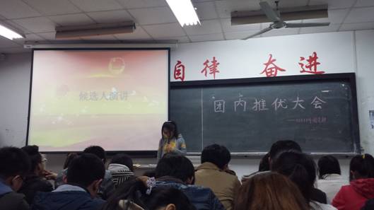 这次演示活动由011114团支部团支书张华建主持,她向我们展示了团内推优的具体过程。首先演奏团歌,完毕后主持人宣读了团委文件并介绍支部概况,重点交代了详细的申请条件。随后3位候选人郏莉、张巧珍、陈倩依次上台演讲作自我介绍,他们的演讲都很精彩,向同学们展现了他们对入党的强烈渴望。紧接着,各位候选人的民意测评人分别对候选人进行评述,让同学们进一步了解了候选人的优缺点。在这之后,大会工作人员检查票箱并在选票结束后收集选票,当众对选票进行唱票计票。第一轮差额选举中,郏莉、张巧珍、陈倩票数分别为15、19、24票。随后,张巧珍和陈倩经过第二轮等额选举后,双双被确定为此次推优对象。最后,由辅导员徐品琪老师对本次推优大会进行点评,对当选的同学表示祝贺并提出要求,同时也激励和鼓舞了落选的同学。活动过程中,大家都很认真的学习,并拍照作记录。活动结束后,徐姝老师向大家交代了团内推优的注意事项并提出下一阶段的工作要求。